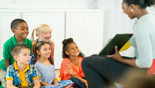 Delia Noemi Jovel Dubon works with story and kids in a classroom in Spanish and English